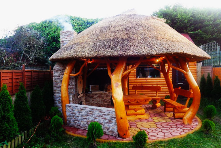 Gazebos constructed from salvaged wood, tree branches or aged barn wood can create an eye-catching and original design.